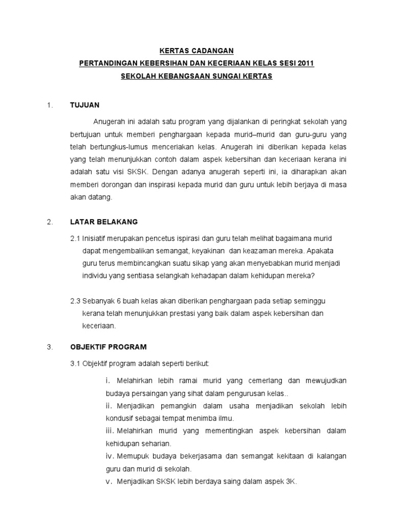 Kertas Cadangan Pertandingan Kebersihan Kelas Pdf